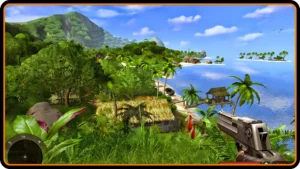 When you start Far Cry, you don’t get the usual tunnel with one way forward. You get an island. A whole island. Blue water, bright sand, jagged rocks, and thick green jungle that hides everything except your own breathing. The game’s CryEngine pushed visuals in a way most of us didn’t even think was possible at the time. The sun pierced through palm leaves, cliffs revealed hidden sniper spots, and the ocean made you forget just for a second that you were about to get shot at. And then, somewhere deep in the trees, gunfire. Suddenly every sound feels like a warning. That mix of beauty and danger defined Far Cry. The game didn’t just show a world; it wanted you to feel it. The silence before a firefight. The tension when you crouch in the bushes listening for footsteps. The panic when a patrol boat suddenly swings its spotlight your way. For 2004, that level of immersion was wild. But not all of it aged gracefully. The freedom to approach encounters from different angles water, cliffs, jungle trails sometimes broke the game’s balance. Enemy AI could be unfairly sharp, or strangely blind. Exploring an open area sometimes meant wandering in circles until you found the “right” bush to crouch in. Back then, I didn’t notice. Today yeah, the cracks show. But the core idea still holds up.